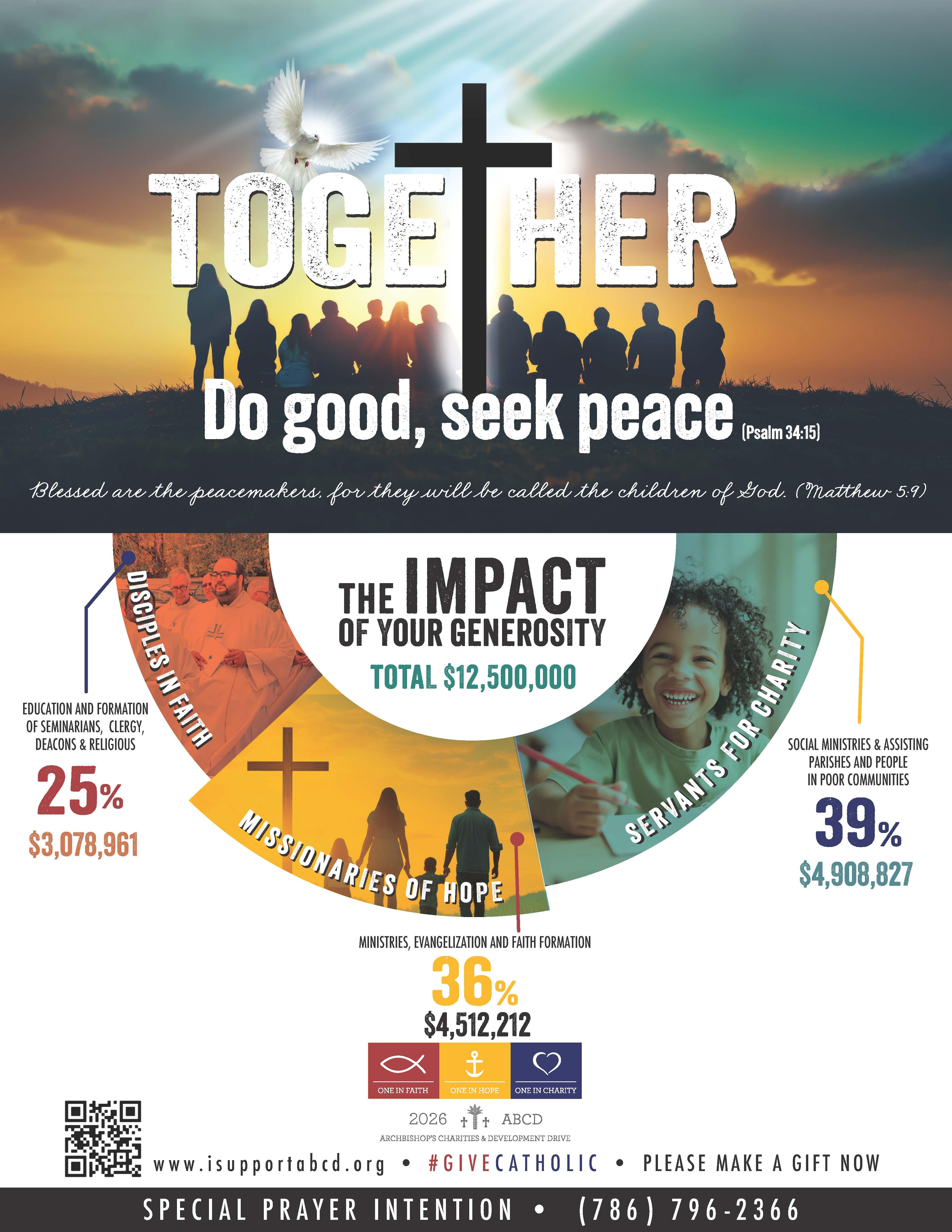 May we be agents of hope to unite, heal and transform our world by answering the call to support the ABCD, joyfully and generously, so that we, ourselves, can develop a deeper connection with our faith, anchored in hope and lived out in charity.